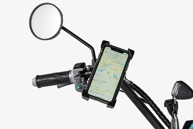 Sie sind mit Ihrem E-Roller unterwegs? Dann befestigen Sie einfach ein beliebiges Smartphone an der Smartphone-Halterung. Ideal, um Ihre Routen-App zu lesen oder Musik zu hören. Und machen Sie sich keine Sorgen, dass Ihr Handy-Akku leer wird, denn Ihr E-Roller lädt ihn einfach auf, während Sie fahren. Praktisch, nicht wahr?