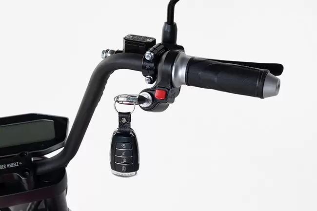 Ihr E-Roller wird mit 2 Schlüsseln und 2 Fernbedienungen geliefert. Mit der Fernbedienung können Sie den E-Roller aus der Ferne ein- und ausschalten und fahren, ohne dass ein Schlüssel im Zündschloss steckt. Außerdem ist der E-Roller mit einem Tempomat ausgestattet. Drücken Sie den roten Knopf und Sie fahren mit Tempomat. Entspannt und sparsam!