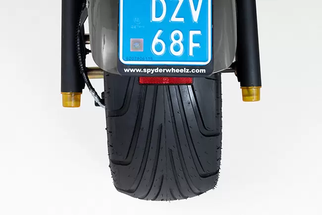Die breiten Luftreifen sind ein wesentlicher Bestandteil des einzigartigen Designs des E-Rollers Sie verleihen ihm sein robustes Aussehen und tragen außerdem zu einem stabilen Fahrverhalten und guter Traktion auf der Straße bei.